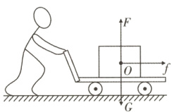 26. 在劳动实践活动中,小刚用平板车运送货物,一开始货物与车一起沿水平路面向右做加速直线运动,请在图中以O为作用点,画出该货物的受力示意图.