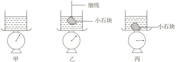 (3)石块排开水的体积$V_{排}=\frac{F_{浮}}{\rho_{水}g}=\frac{1N}{1.0\times10^{3}kg/m^{3}\times10N/kg}=10^{-4}m^{3}$,因为石块浸没于水中,所以$V_{石}=V_{排}$,因此石块的密度$\rho_{石}=\frac{m_{石}}{V_{石}}=\frac{0.26kg}{10^{-4}m^{3}}=2.6\times10^{3}kg/m^{3}$.
