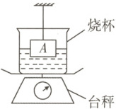 12. 如图所示,台秤上放置一个装有适量水的烧杯(烧杯质量不计),已知水的质量为600 g,烧杯的底面积为100 cm²,一个质量为800 g、体积为1 000 cm³的实心长方体A用细线系着,先将其一半浸入烧杯的水中(烧杯的厚度忽略不计,烧杯内水没有溢出). 下列说法不正确的是(g取10 N/kg)( )