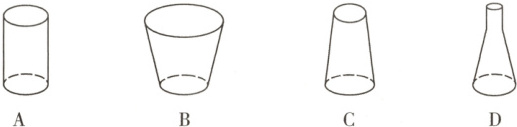 6.(深圳期末)如图所示,在水平桌面上放有A、B、C、D四个底面积均为0.01 m²的薄壁空杯,当在其中一个空杯中装入1 kg的水后,水对杯底产生的压强为900 Pa,则这个杯子的形状可能是图中的 ( )