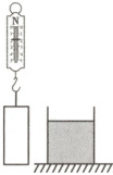 5. 如图所示,弹簧测力计下悬挂着不吸水的圆柱体,圆柱体质量为180 g. 不计厚度的平底容器置于水平桌面上,质量为100 g,底面积为50 cm²,高为8 cm,容器内盛有质量为350 g的水. 当圆柱体浸入水中静止时,圆柱体未接触容器,弹簧测力计示数为1.4 N,此时容器对水平桌面的压强是(g取10 N/kg) ( )