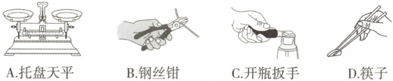 2.(连云港中考)如图所示是生活中几种常见的杠杆,其中属于费力杠杆的是 ( )
