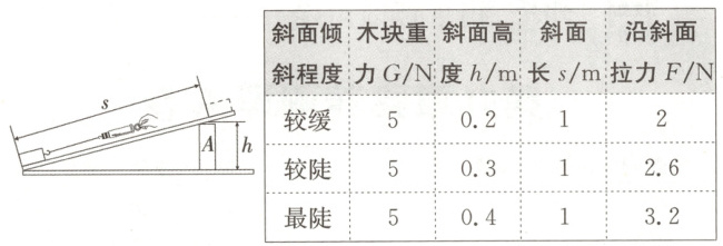 (1)比较表中木块重力G和拉力F的大小,得出使用斜面时 _______(选填“能”或“不能”)省力;斜面长度相同时,斜面高度越大越 _______(选填“省力”或“费力”),木块在移动过程中受到 _______ 个力的共同作用.