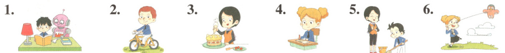三、根据图片,选短语补全句子,将序号填在横线上。