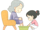 A. Li Mei helped Grandma wash her feet. B. He played on the computer.