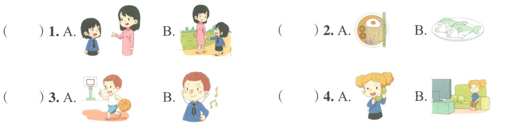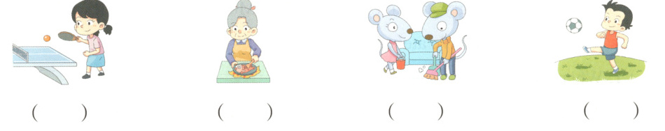 三、根据图片选择正确的短语,将其序号填在括号内。