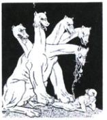 史料一 下面这幅漫画刊登在1921年德国一家杂志上,一只五头怪兽将踩在脚下的猎物的内脏吞食殆尽。