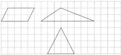 1. 在下面的方格纸上画出两个形状不同,但与图中的平行四边形面积相等的三角形。(4分)