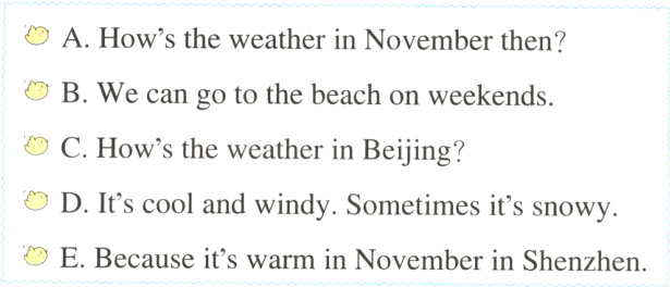 Danny:Hi,Sally.It's sunny and warm in Shenzhen now.1.______