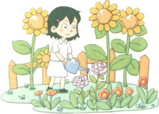 My friend Alice has a small garden. She has many plants in it. She waters them every day. Some plants are tall. They have big flowers and green leaves. Some plants are short. They are all beautiful. Alice likes her garden very much.