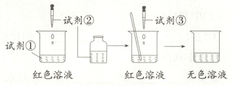C 提示:由溶液由红变为无色可知,加入的指示剂为酚酞溶液,①中试剂为NaOH溶液,②中为酚酞溶液;加入试剂③后溶液变为无色,证明了碱被消耗掉,故可判断③是稀盐酸,酸与碱发生了中和反应。