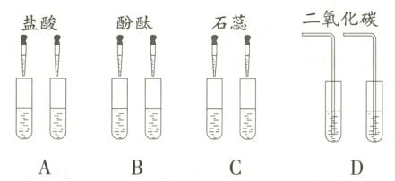 D提示:氢氧化钠和氢氧化钙与盐酸反应,均无明显现象,故A项错误;氢氧化钠和氢氧化钙都呈碱性,均可使酚酞变红、石蕊变蓝,故B、C项错误。