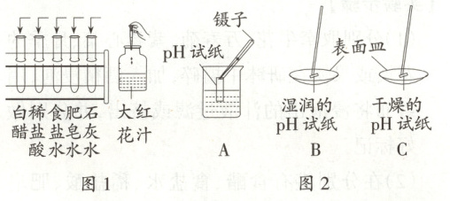 (1)把自制的大红花汁按图1所示分别滴加到试管中,观察到的现象如表所示: