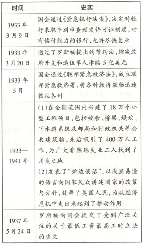 (2)据材料,概括罗斯福总统通过哪些方式应对危机的打击。