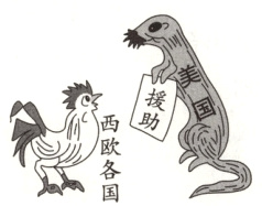 D 提示:漫画用一句俗语解释就是黄鼠狼给鸡拜年,形象地体现了马歇尔计划的实质,即美国推行马歇尔计划意在通过援助复兴西欧,从而加强对西欧的控制。故选D项。