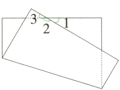(2)把一张长方形的纸如下图折叠,其中∠1 + ∠2 + ∠3 = 210°,求∠1、∠2、∠3的度数。(4分)