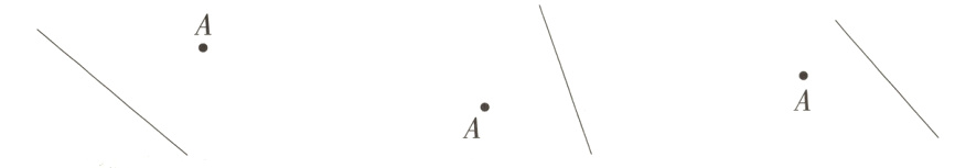 (2)(此处有三个图,分别是过点A作直线的垂线的不同表示)