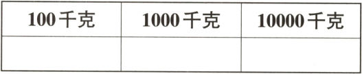 5. 5颗枣大约重10克,照这样计算,500颗这样的枣大约重1000克,500000颗这样的枣大约重多少千克?在合适的答案下面画“√”。