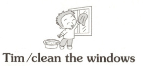 It's Saturday today. We are doing housework. My grandpa is watering the flowers. My grandma is cooking the meal. My mother is cleaning the bedroom. My father is cleaning the windows. My sister is cleaning her shoes. I'm cleaning the floor. How busy(忙的) we are!