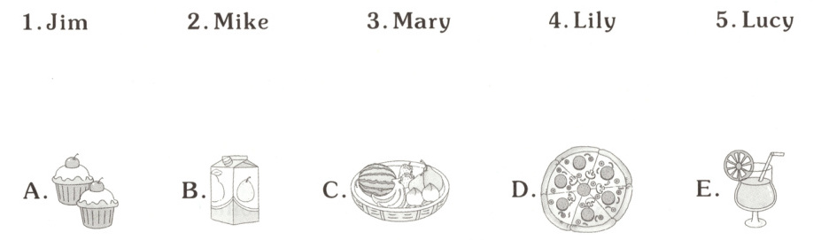 三、听五段小对话,将人物与对应的图片连线。(10分)