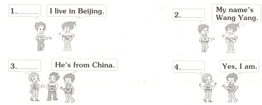1.—Where are you from? —I'm from the U.S.I live in Washington D.C. 2.—Where are you from? —I'm from Britain.I live in London. 3.—Where are you from? —I'm from Canada.I live in Ottawa.