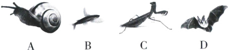 C 蜗牛属于软体动物,具有坚硬的外壳,A不符合题意;鱼体表覆盖有鳞片,B不符合题意;螳螂属于节肢动物,具有外骨骼,能保护自己和防止体内水分蒸发,C符合题意;蝙蝠体表被毛,属于哺乳动物,D不符合题意。