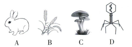 D 除病毒外,生物都是由细胞构成的。A兔、B小麦和C蘑菇都有细胞结构;病毒无细胞结构,仅由蛋白质外壳和内部的核酸构成。