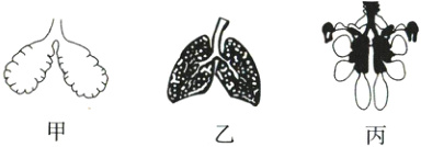 B.乙为人的肺,由细支气管分支和肺泡组成