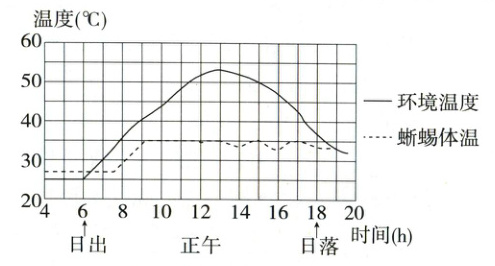 解题思路:1.分析图表,理解蜥蜴体温与环境温度的关系。2.逐项对比选项与图表信息,判断正误。3.注意蜥蜴为变温动物,骆驼为恒温动物。