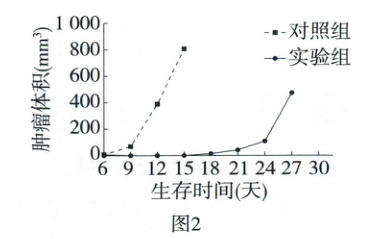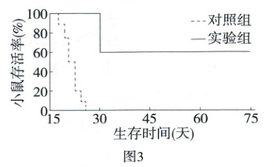 (3)①该实验的步骤为:一、给实验组和对照组的小鼠分别接种黑色素瘤纳米疫苗和注射PBS缓冲液;二、两周后给两组小鼠同时注射黑色素瘤细胞;三、测定肿瘤体积并统计小鼠存活率。②图2和图3中的实验结果说明接种纳米疫苗可减轻黑色素瘤带来的危害,判断依据是:接种纳米疫苗的小鼠比注射PBS缓冲液的小鼠的黑色素瘤增长慢,且接种纳米疫苗的小鼠存活时间长,存活率高。