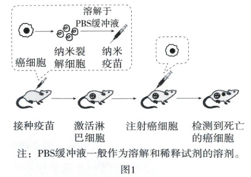 (2)根据图1可知,纳米疫苗可以激活淋巴细胞,该细胞的作用是识别并清除癌细胞。