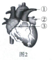 (2)心脏主要由_____组织构成,是运输血液的“泵”。心肌细胞通过_____作用为其收缩过程提供能量。心肌细胞分解的有机物是通过图2中[③]_____动脉运输而来的,该血管病变会使心肌缺血,影响心脏的功能。