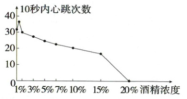 D.实验结果表明,浓度在15%以下的酒精对水蚤心率没有影响