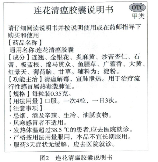 (3)连花清瘟胶囊属于______(填“处方药”或“非处方药”),为保证安全用药,流感患者在使用前应仔细阅读药品说明书,用以了解______、______(请写出两点)。