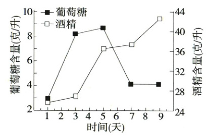 B 第7~9天酒精含量迅速上升是因为容器内氧气不足,酵母菌进行无氧呼吸产生酒精,B错误。