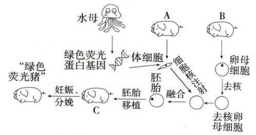 (1)“荧光猪”的诞生主要利用了__________和克隆技术。转入绿色荧光蛋白基因的猪能发出绿色荧光说明________。
