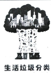 (示例)该海报的主体配图是一棵大树,图下面是一行大字“生活垃圾分类”。树冠内是楼房和居民,指人们的生活区;树干由多种多样的生活垃圾构成,指人们生活产生了诸多垃圾;树根由分类垃圾桶构成,提示人们要分类投放生活垃圾。