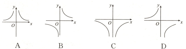 4. 已知抛物线$y = x^2 - 2x + m + 1$与$x$轴有两个不同的交点,则函数$y=\frac{m}{x}$的大致图象是( )