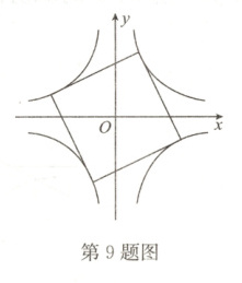 9. 如图,正方形四个顶点分别位于两个反比例函数 $y=\frac{3}{x}$ 和 $y=\frac{n}{x}$ 的图象的四个分支上,则实数n的值为 ( )