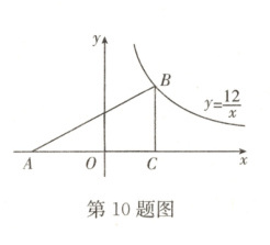 10. 如图,$Rt\triangle ABC$ 的顶点B在反比例函数 $y=\frac{12}{x}$ 的图象上,AC边在x轴上. 已知 $\angle ACB = 90^{\circ}$,$\angle A = 30^{\circ}$,$BC = 4$,则点A的坐标为 ( )