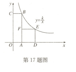 17. 如图,四边形 $OABC$ 是矩形,$ADEF$ 是正方形,点A,D在x轴的正半轴上,点C在y轴的正半轴上,点F在AB上,点B,E在反比例函数 $y=\frac{k}{x}$ 的图象上,$OA = 1$,$OC = 6$,则正方形 $ADEF$ 的边长为________.