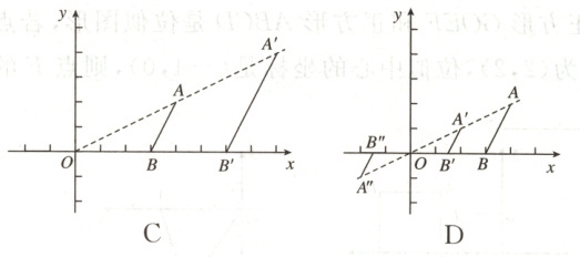 10. 在平面直角坐标系中,有两点A(4,2),B(3,0),以原点O为位似中心,A'B'与AB的相似比为1/2,得到线段A'B'. 下列画法正确的是( )