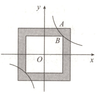 23.(10分)如图,大、小两个正方形的中心均与平面直角坐标系的原点O重合,边分别与坐标轴平行,反比例函数 $y=\frac{k}{x}$ 的图象与大正方形的一边交于点 $A(1,2)$,且经过小正方形的顶点B.
