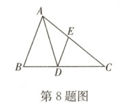 8. 如图,已知$DE // AB$交$AC$于点$E$,如果$\frac{AE}{EC}=\frac{2}{3}$,那么$\frac{BD}{BC}=$( )