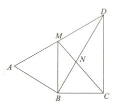 19. (8分)如图,$\angle ABD = \angle BCD = 90^{\circ}$,$DB$平分$\angle ADC$,过点$B$作$BM // CD$交$AD$于点$M$. 连接$CM$交$DB$于点$N$.