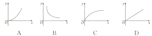 3. 某村的总耕地为100亩,设村里人数为x人,平均每人占有耕地y亩,则y与x之间的函数图象大致是 ( )