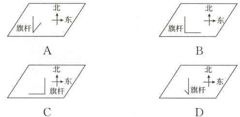7. 下面四幅图是在同一天同一地点不同时刻太阳照射同一根旗杆的影像图,其中表示太阳刚升起时的影像图是 ( )