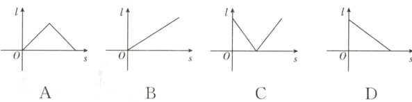 9. 如图,小红居住的小区内有一条笔直的小路,小路的正中间有一路灯,晚上小红由A处径直走到B处,她在灯光照射下的影长l与行走的路程s之间的变化关系用图象刻画出来大致是( )