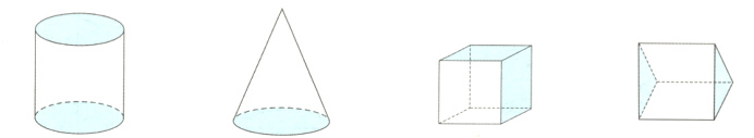 1. 用一个平面去截下列立体图形,截面可以得到三角形的立体图形有( )个。