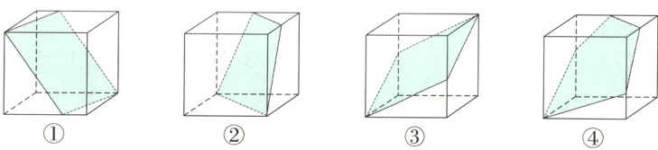 2. 下面是同一个正方体的几种不同切法,截面分别是什么形状?试着画一画。